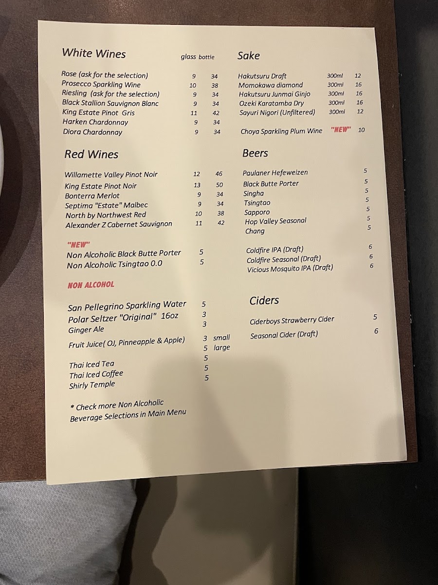Wine List - Sake List